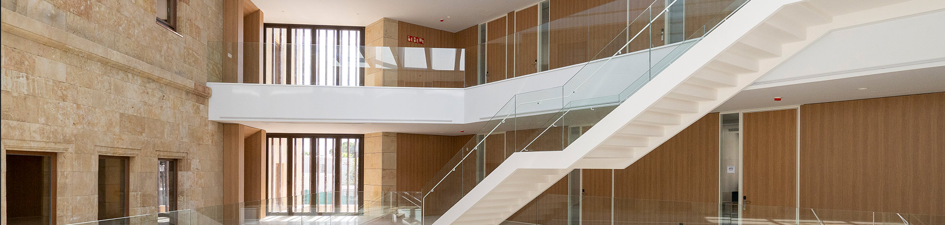 La partición PRIMACY 113 permite la integración visual completa de las zonas de trabajo, aportando una atenuación acústica entre salas de hasta RW 48 db, con la utilización de dos vidrios laminares de seguridad 6+6.Las juntas conseguidas con perfiles de policarbonato transparente aseguran un perfecto sellado entre vidrios.
