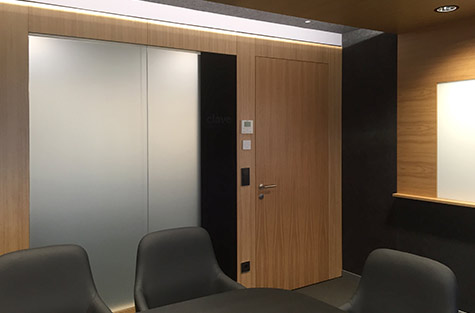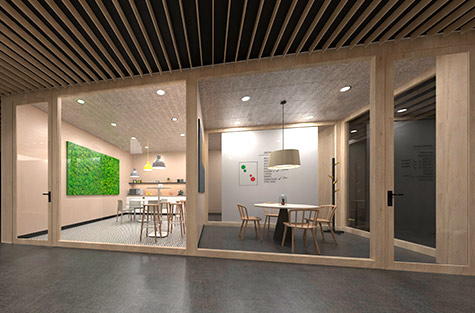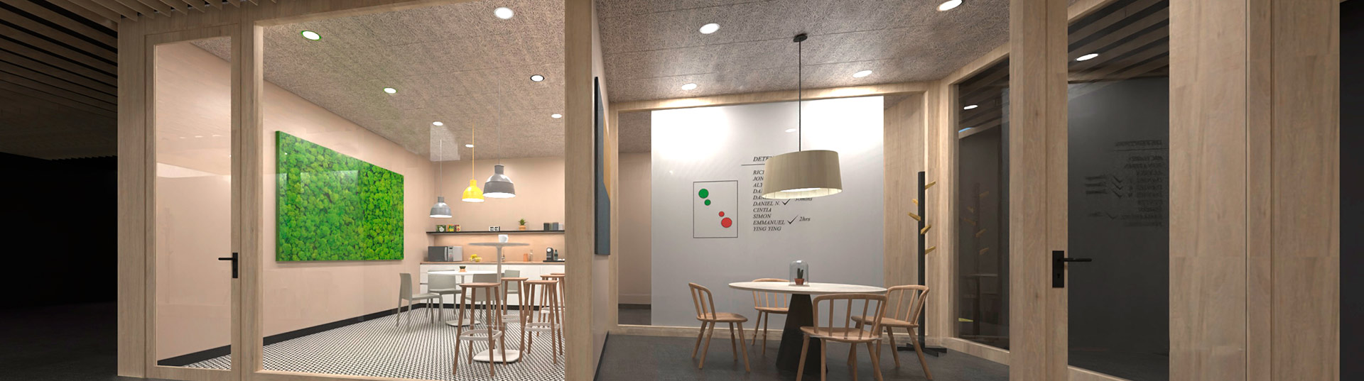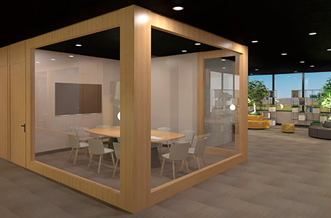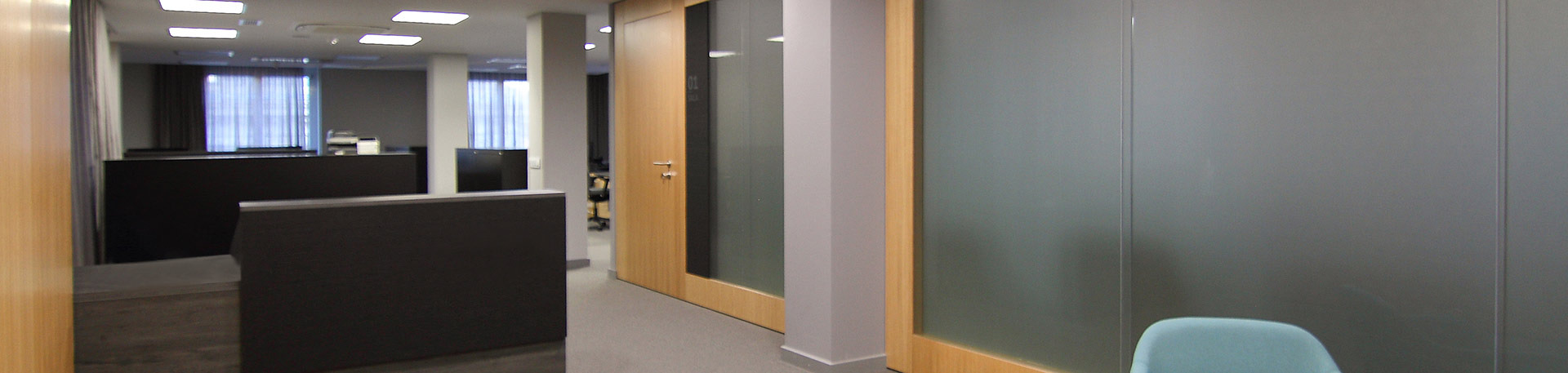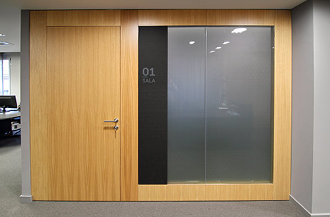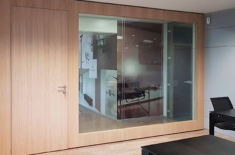 La Serie Wood apuesta por la madera natural manteniendo las características propias de una mampara, desmontabilidad, reutilización y registrabilidad de instalaciones eléctricas por el interior.